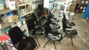 弊社作業場での椅子の塗装等