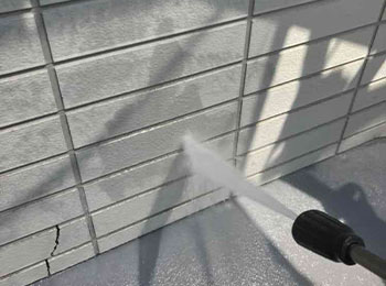 外壁の高圧洗浄作業を行っています。