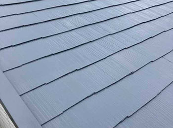 屋根の上塗を行っています。使用材料はシリコン樹脂塗料(マックスシールド1500Si-JY)です。