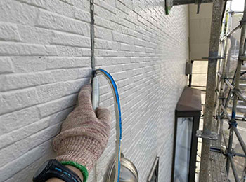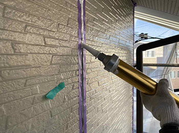 外壁目地のシーリング打替作業(シーリング材充填)を行っています。