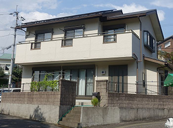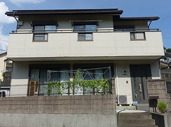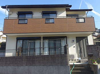 ベランダ外壁は張り替え、屋根はフッソ樹脂遮熱塗料、外壁は弱溶剤型シリコン樹脂塗料を使用させていただきました。