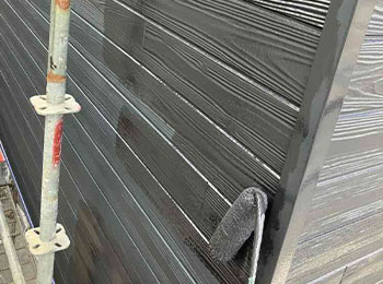 外壁の中塗を行っています。使用材料は無機塗料(無機UVコート)です。
