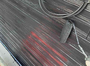 屋根の下塗作業を行っています。使用材料はエポキシ樹脂塗料(エポックマイルド#2000)です。