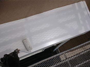 出窓の塗装を行っています。使用材料はシリコン樹脂塗料(ファインシリコンフレッシュⅡ)です。