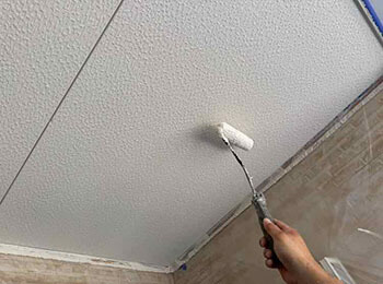 軒天井の塗装作業を行っています。。使用材料はNADアクリル樹脂塗料(ビルディック)です。